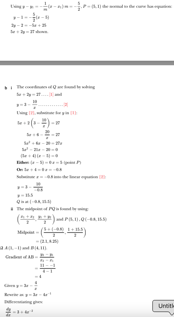 9709. P1. Differentiation. Exercise 4 & Mixed Exercise Worked Solutions