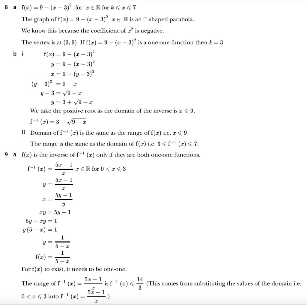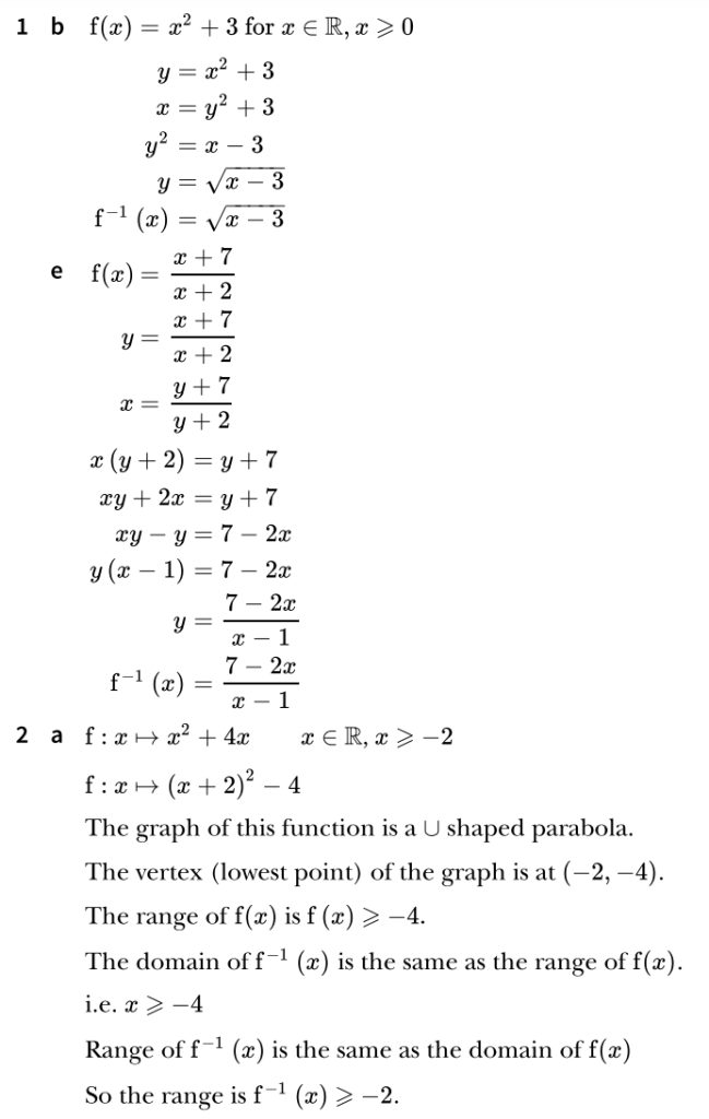 9709. P1. Functions. Exercise 3 Worked Solutions