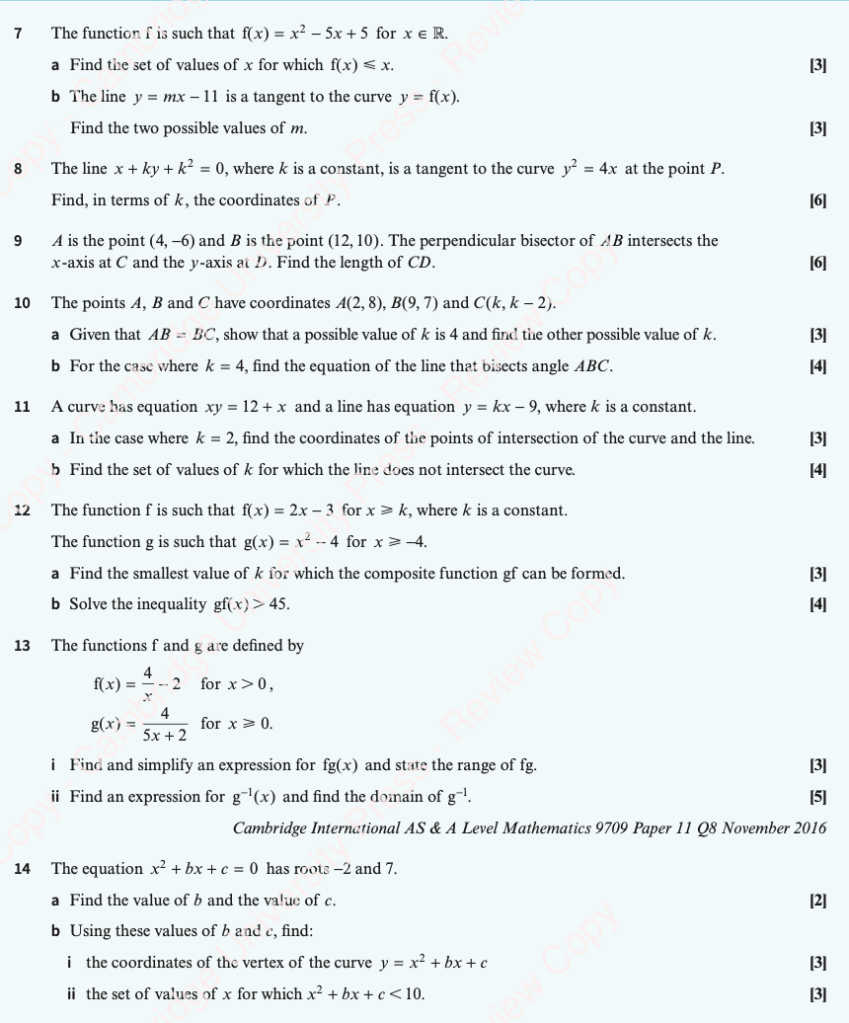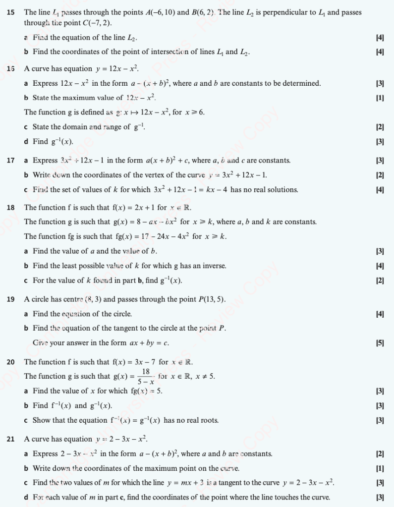 9709. P1. Practice: Coordinate Geometry, Quadratics & Functions