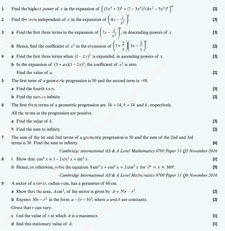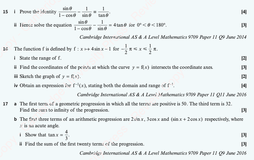 9709. P1. Practice on Circular Measure, Series & Trigonometry