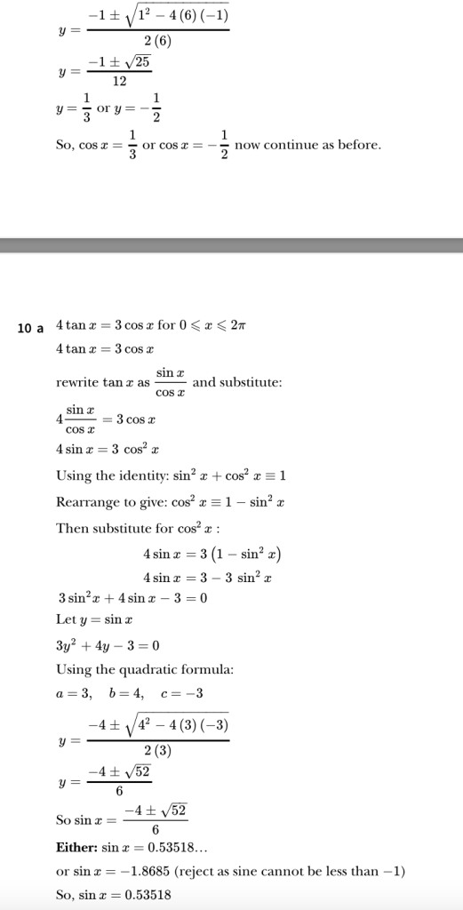 9709. P1. Trigonometry. Exercise 6 Worked Solutions