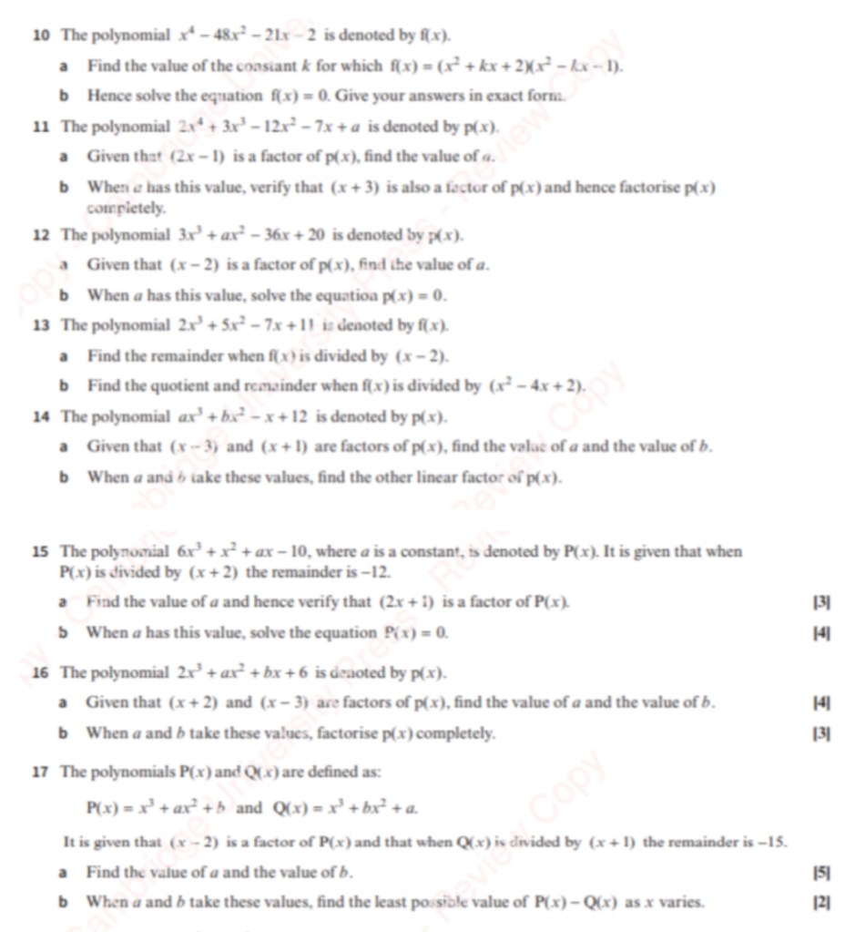 b.) Polynomial Division / Comparing Coefficients;