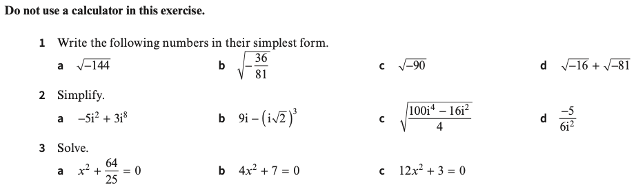 4.) Write each of the following complex numbers in the form x+yi, giving surds in your answer where appropriate: