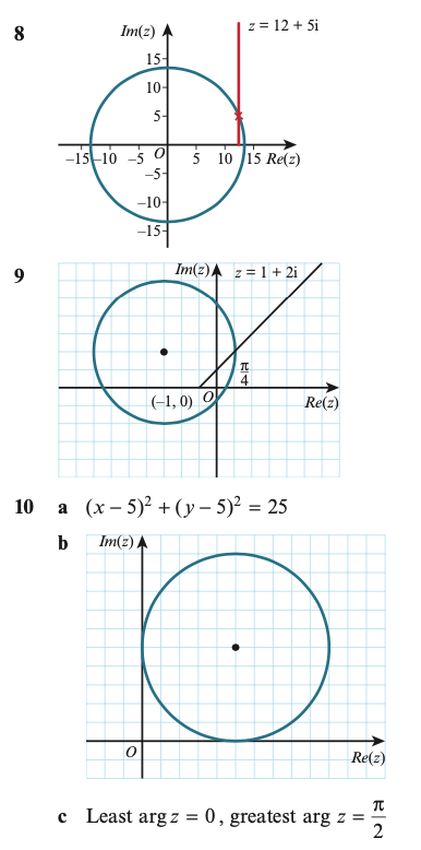 2.) On a simple Argand diagram sketch the loci |z| = 5 and |z-5|=|z|. Hence determine the complex numbers represented by points common to both loci.