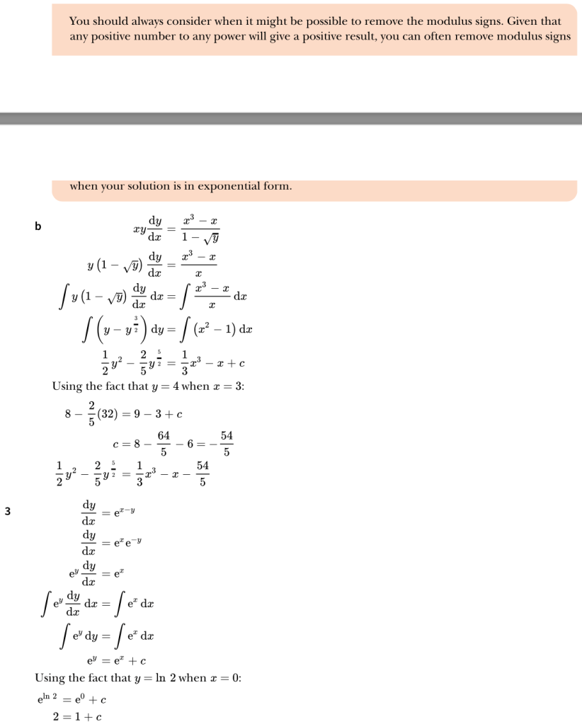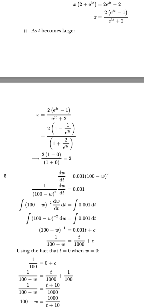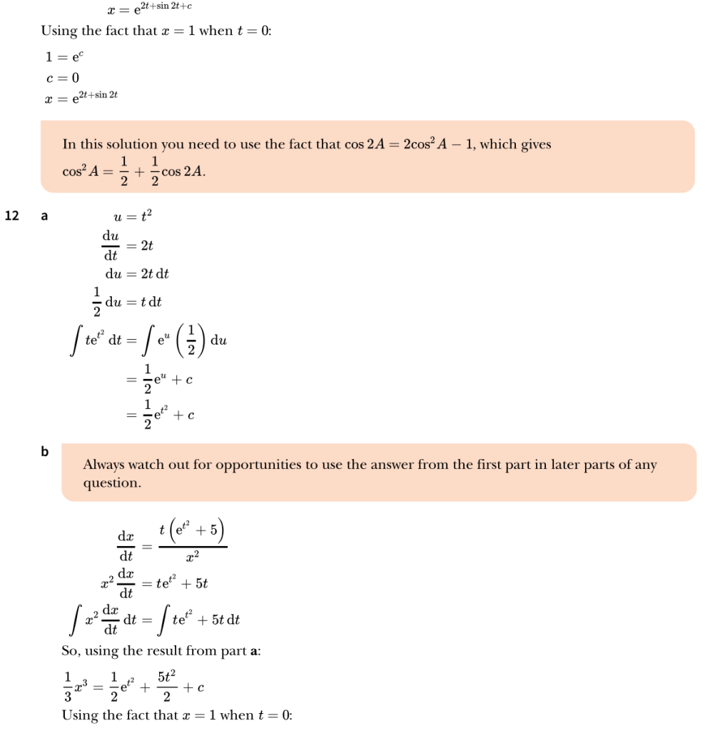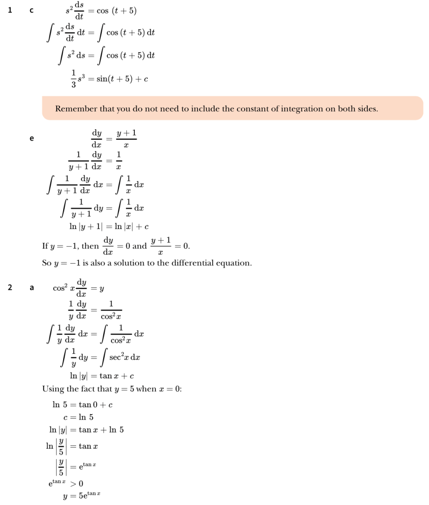 9709. P3. Differential Equations. Exercise 1 Worked Solutions