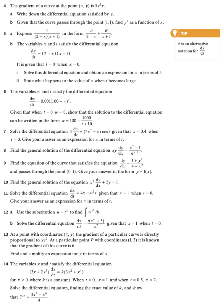 - Find the particular solution to this differential equation for which the initial velocity is 2ms-1;