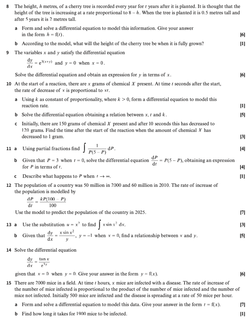 1.) The rate of increase of a population P of microorganisms at time t, in hours, is given by . Initially the population size was 8.