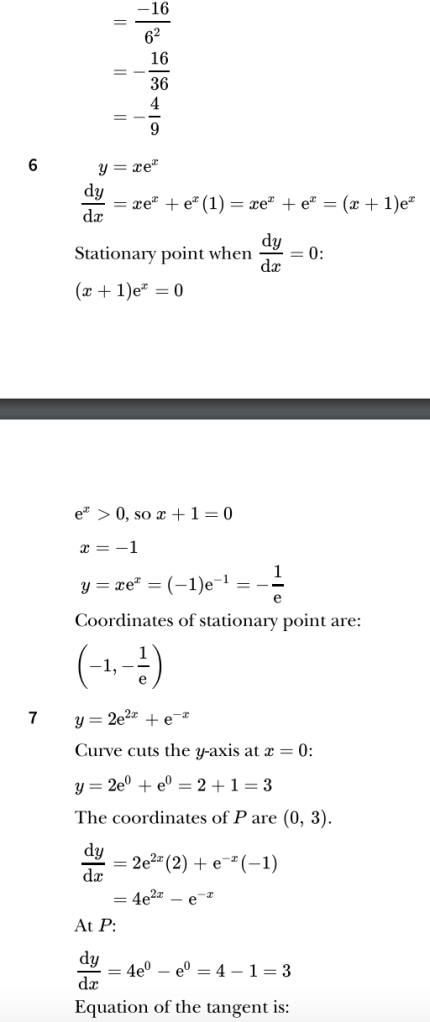 9709. P3. Differentiation. Exercise 3 Worked Solutions