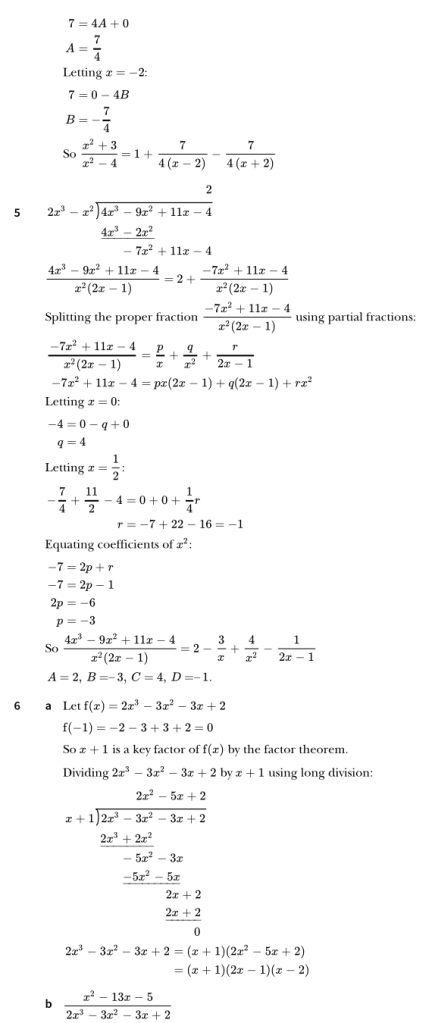 9709. P3. Further Algebra. Exercise 2 Worked Solutions