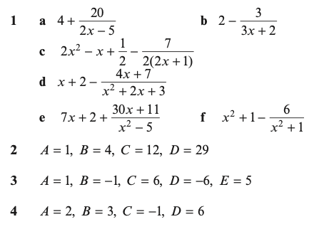There are three standard ways in which we will use partial fractions, illustrated algebraically below. Their application will be best seen by way of example