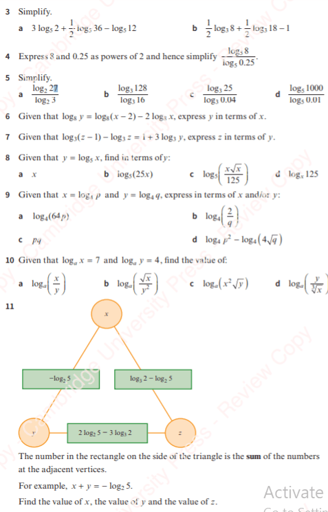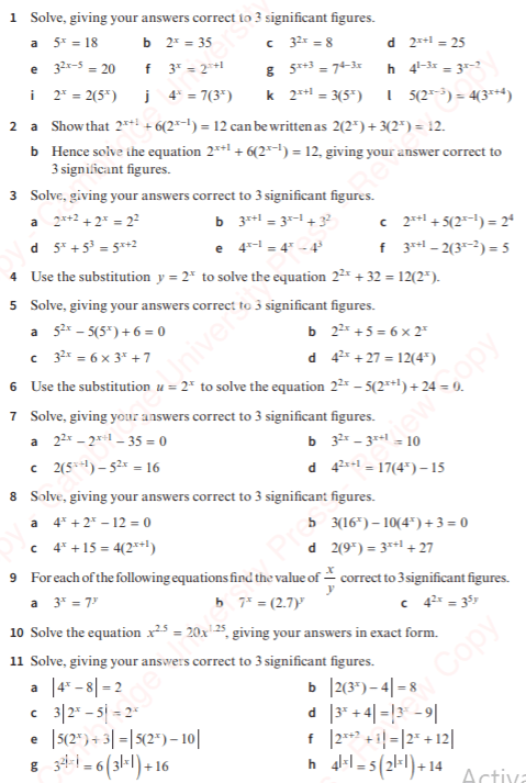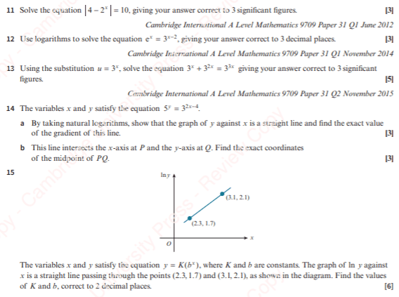 - Taking the logarithm of each side of the equation and then using algebraic manipulation to isolate the variable; and
