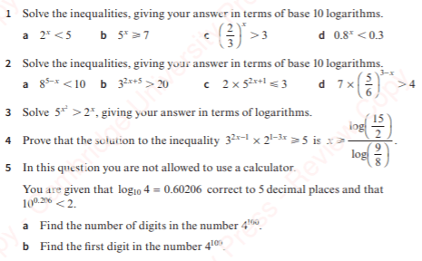 As with solving exponential equations we take the logarithm of both sides of the equation (to ensure the variable is not in the index).