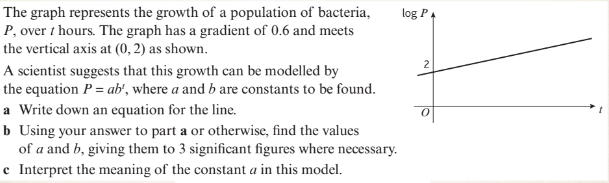 e.g. If data is modelled by y=aebx, then also lny=lna+bx, and so plotting x against lny gives a line with gradient b and y-intercept lna.