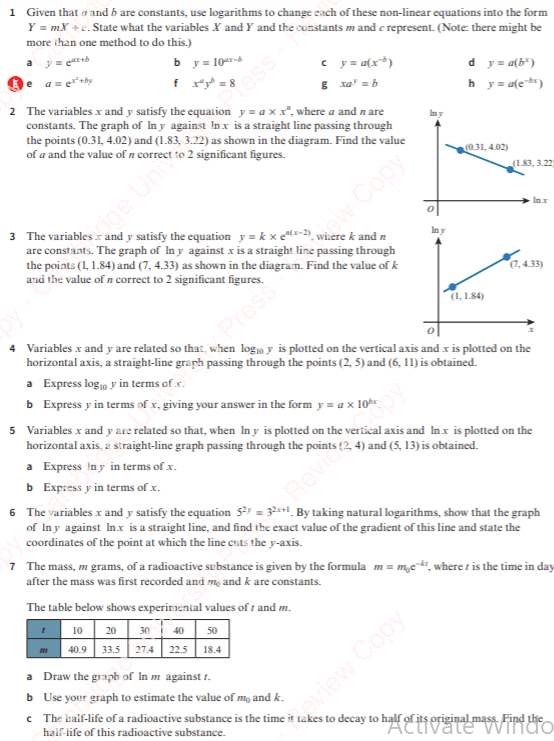 Exercise 8 (N.B. Question 6 should say “the graph of y against x”)