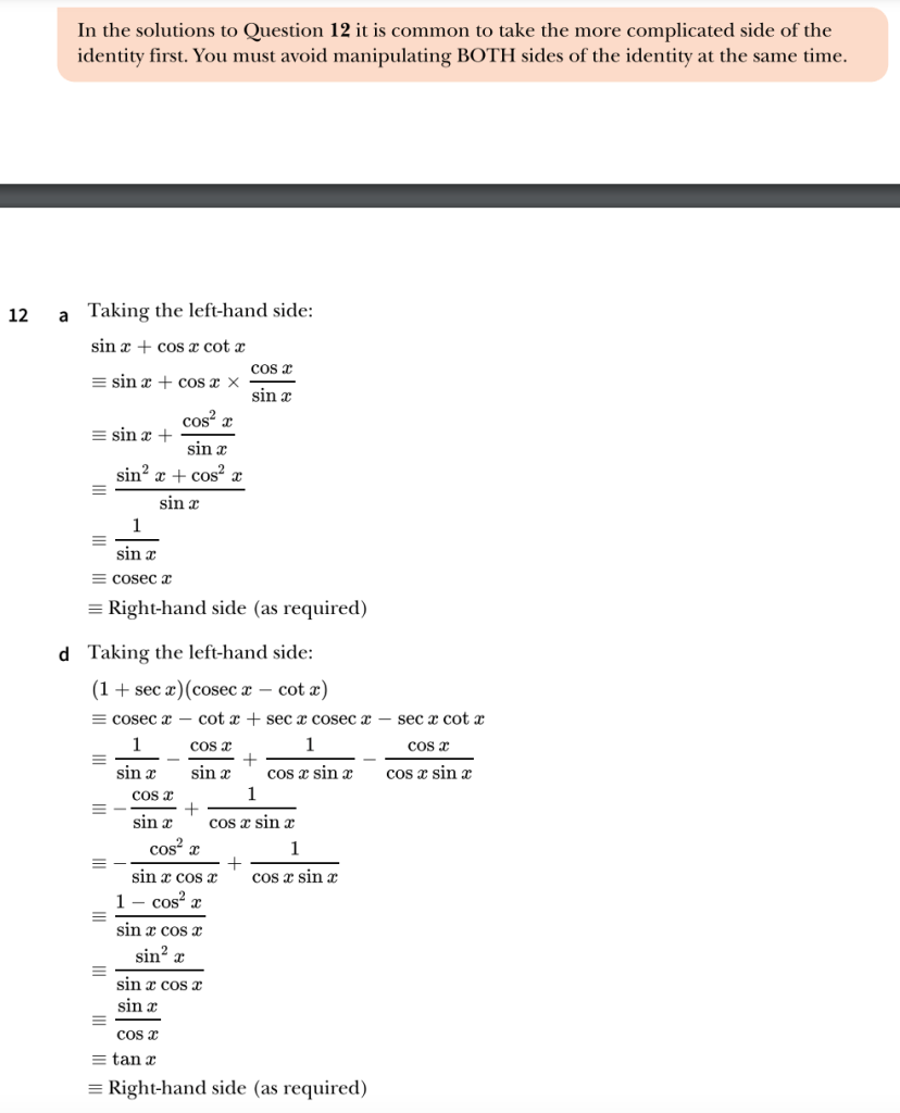 9709. P3. Trigonometry. Exercise 1 Worked Solutions