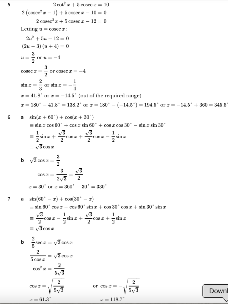 9709. P3. Trigonometry Exercise 5 & Mixed Exercise Worked Solutions