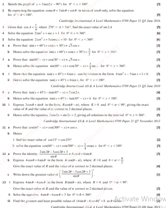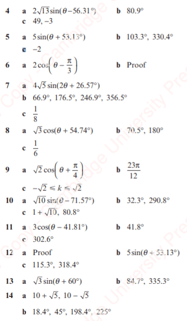 - Rcos(x-𝛼), where R>0 and 0°<𝛼<90°, giving your values of R and 𝛼 to 1 decimal place where appropriate.
