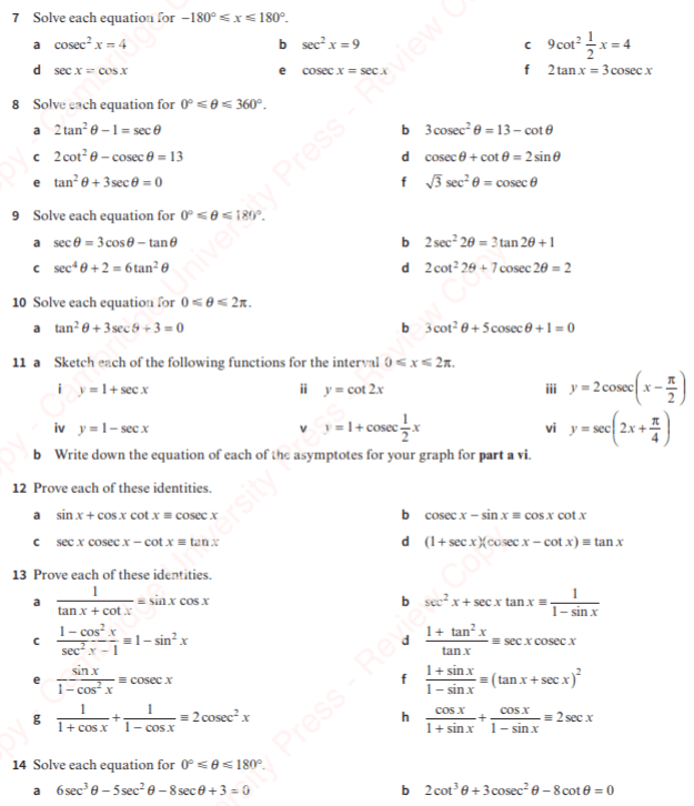 We can divide Pythagoras’ Theorem by sin2x or cos2x to give us alternative forms of Pythagoras’ Theorem that involve these reciprocal functions.