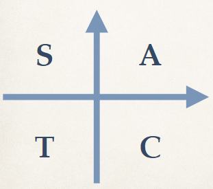 Likewise, if an angle is obtuse, then only the sine of the angle will be positive, it’s tangent and cosine will both be negative.