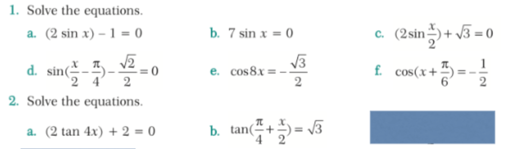 Note: Take care not to divide an equation through by a trigonometric function, as this can lose some of the solutions to that equation. Instead, rearrange the equation using addition and subtraction and factorise out the trigonometric function, then these solutions won’t be lost.