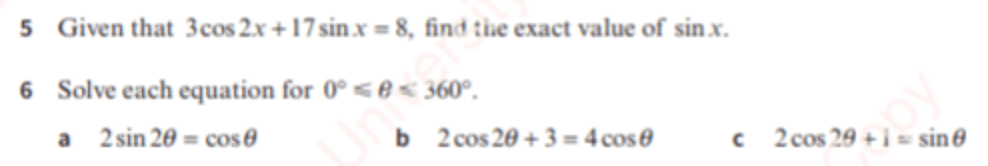 - Hence solve for 0°<𝜽< 360° the equation 2cos𝜽 + 5sin𝜽 = 3