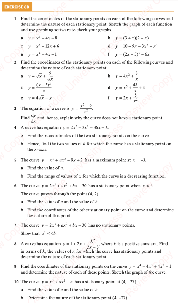 - Find the coordinates of the stationary points on the curve with equation y=2x3-15x2+24x+6