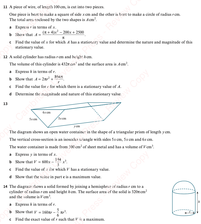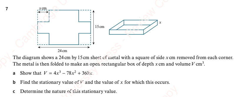 1.) A cuboid has a square base. The height of the cuboid is twice the length of the side of the base. The surface area of the cuboid is increasing at a rate of 10cm3s-1. Find the rate of increase of the volume of the cuboid when the height of the cuboid is 12cm.