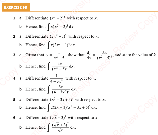 (d) Integrate 30x5(x6+9)3/2 with respect to x