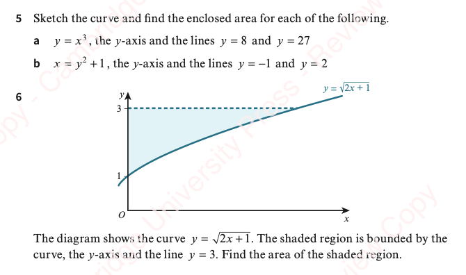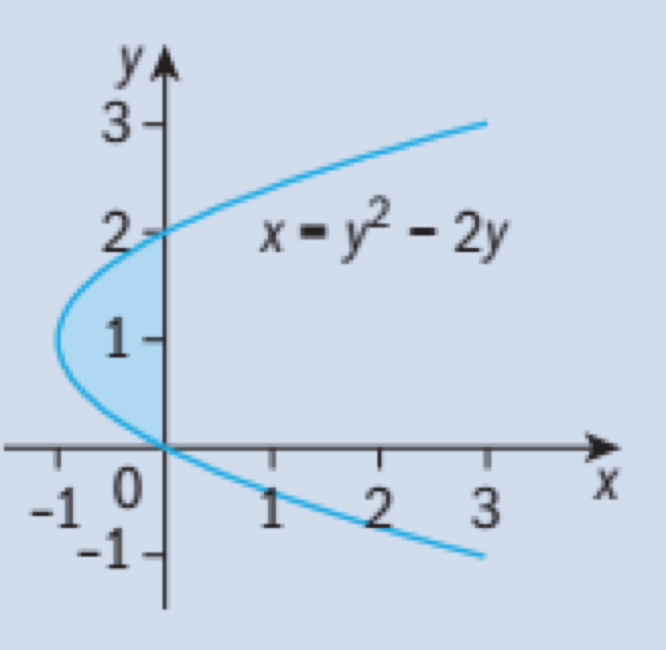 - Find the area bounded by the curve with equation x = y2 – 2y and the y-axis shown in the diagram: