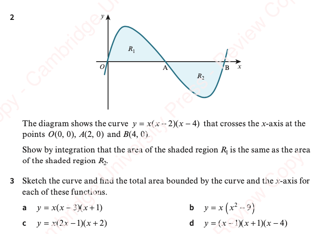 When the area bounded by a curve and the x-axis is below the x-axis gives a negative answer. So we need to be careful! We should draw a sketch, then calculate and sum the absolute values of the relevant areas.