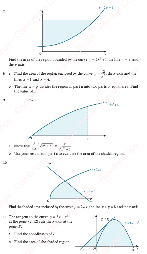 The area between a positive curve, the x-axis and the lines x=a and x=b is given by: Area = where y=f(x) is the equation of the curve.