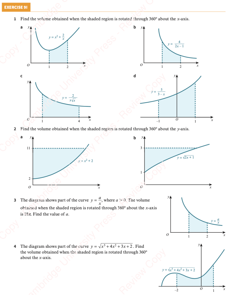 - The region between the curve y=x2, the x-axis and the lines x=1 and x=3 is rotated through 360º about the x-axis. Find the volume of revolution which is formed.