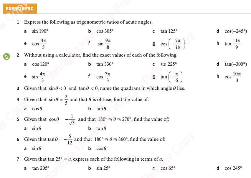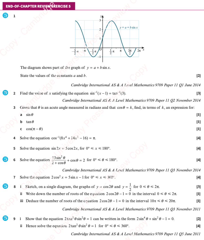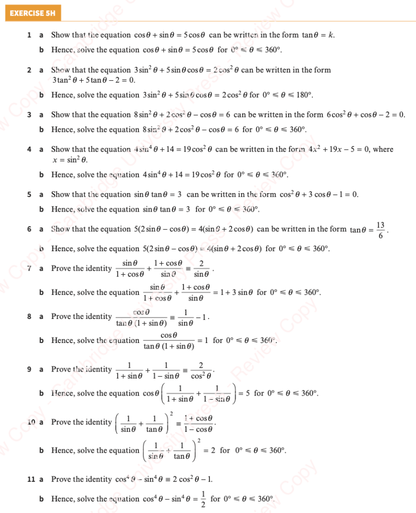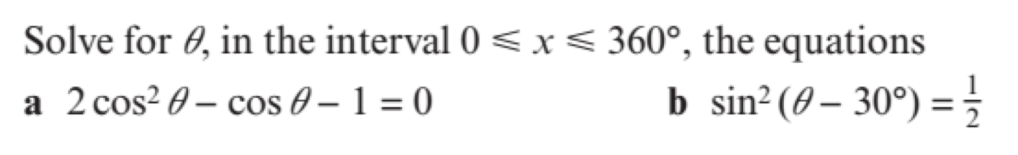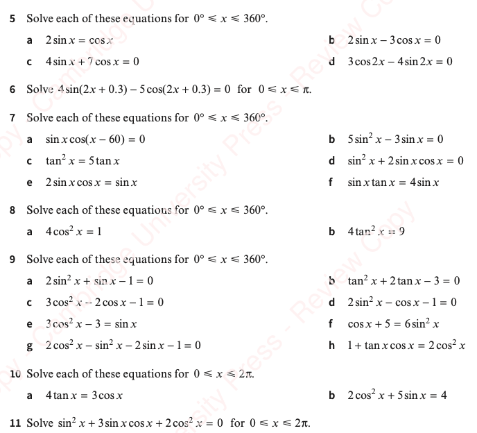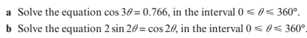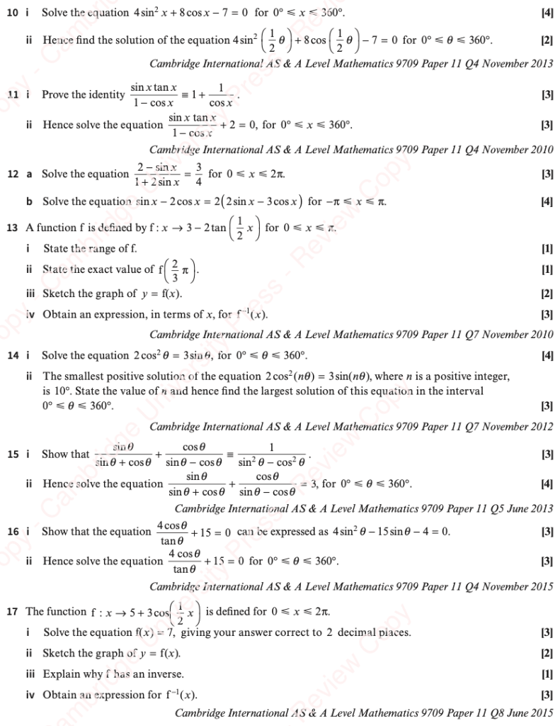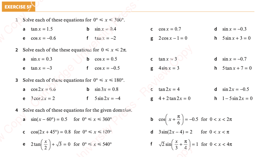 We can solve trigonometric equations, but due to the periodic nature of trigonometric functions, our solution will be a set of infinitely many values. Cambridge questions will ask for those values within a specific domain.