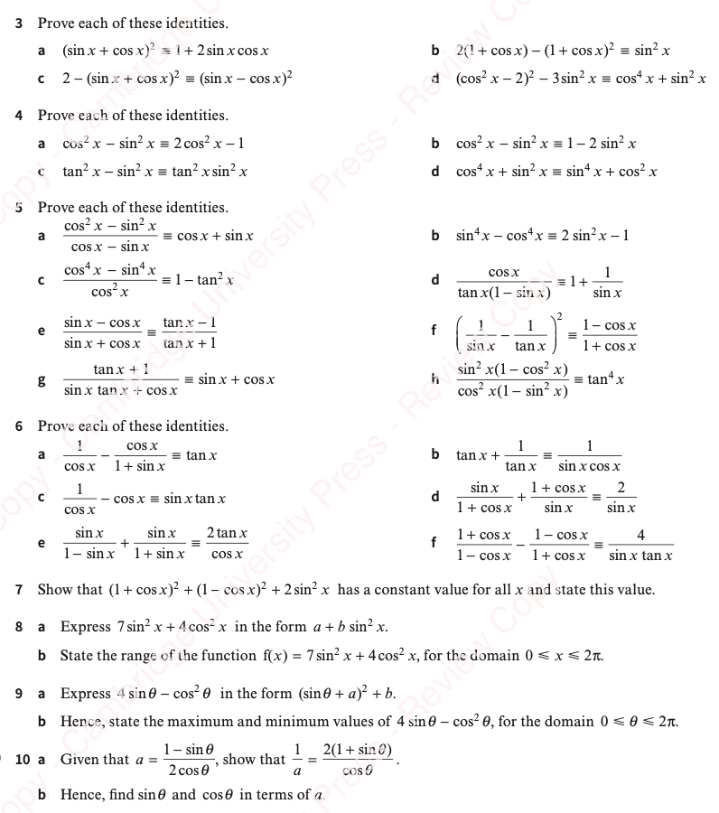 - sin2x+cos2x=1 for all x;