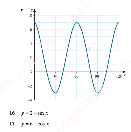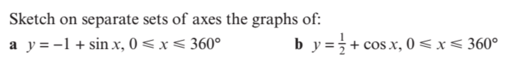- y=a+sinx is the graph of y=sinx vertically translated by a, amplitude and period unchanged; and
