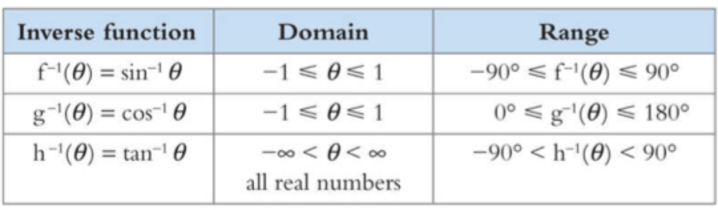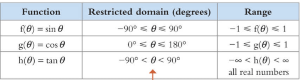Because trigonometric functions are many-one, we need to restrict their domain to define inverse functions. (It is from this restricted range that a calculator will give the output for an inverse trigonometric function. This value is called the principal value.