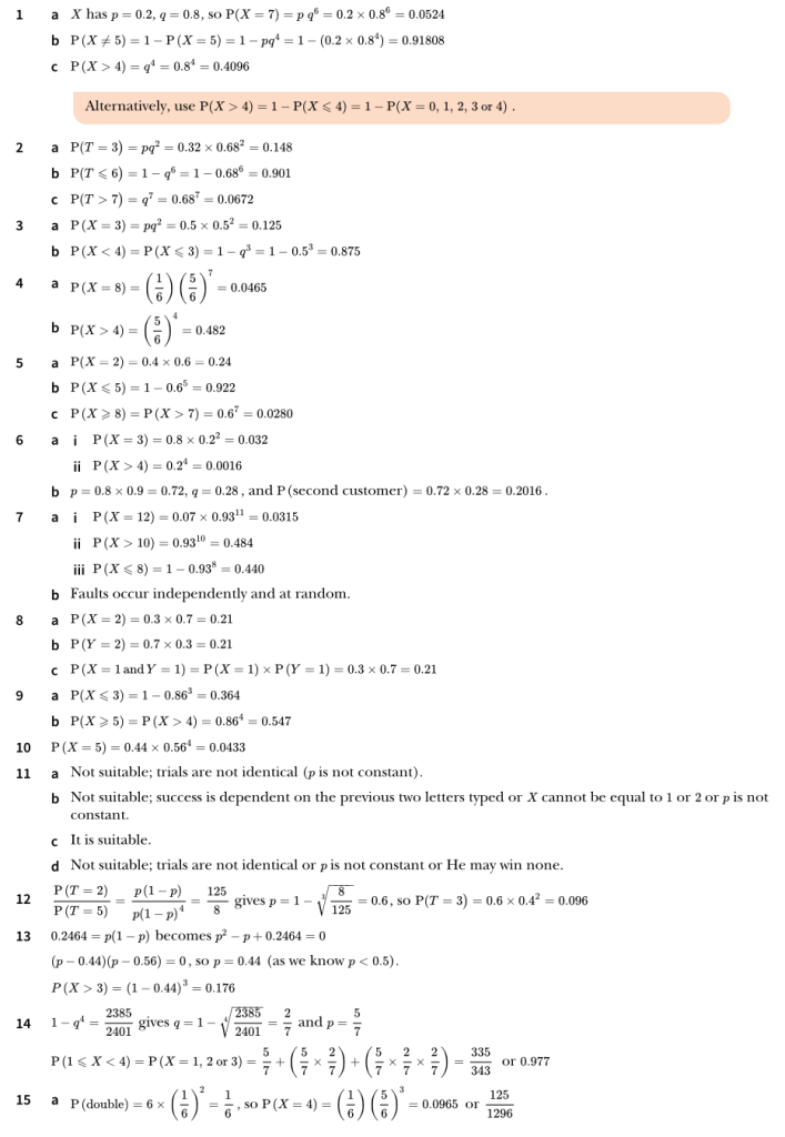 9709, S1. Binomial & Geometric Distributions. Exercise 3 Worked Solutions