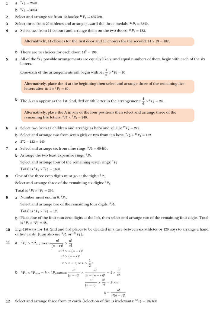 9709, S1. Combinatorics. Exercise 4 Worked Solutions