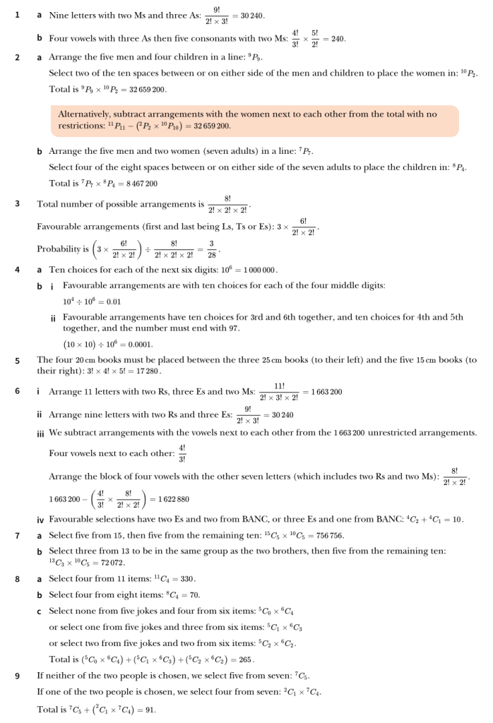 9709, S1. Combinatorics. Exercise 6 & Mixed Exercise Worked Solutions