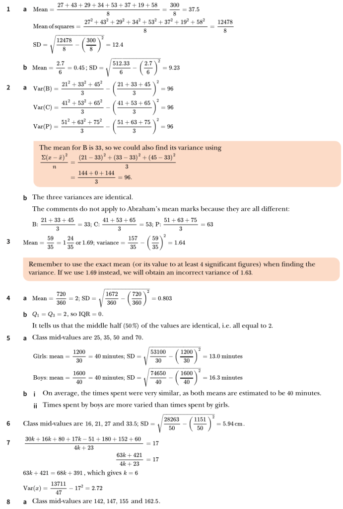 9709. S1. Measures of Variation. Exercise 2 Worked Solutions