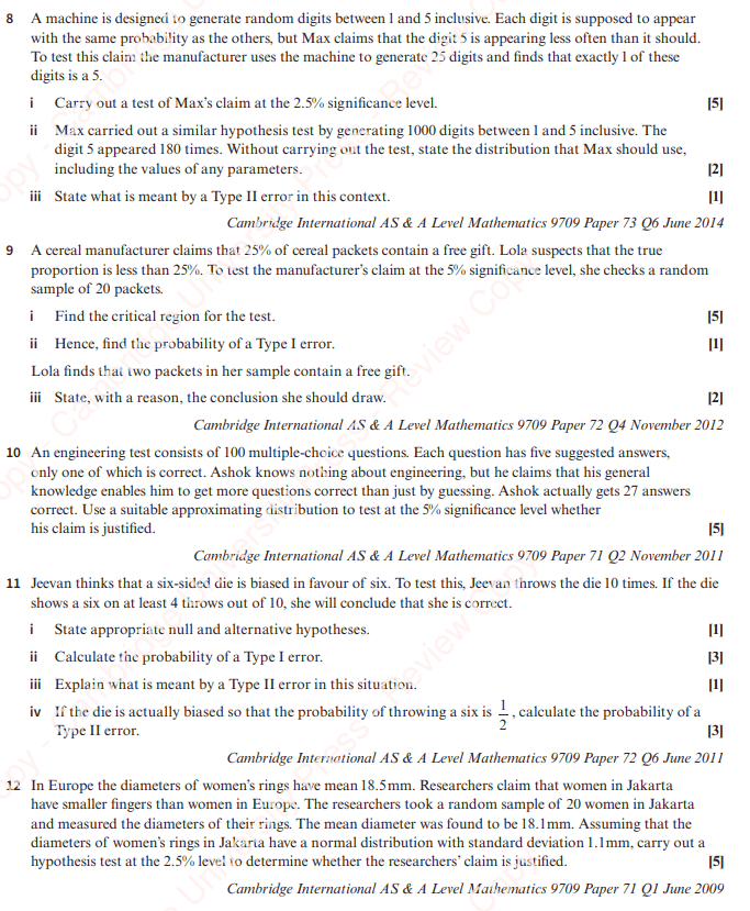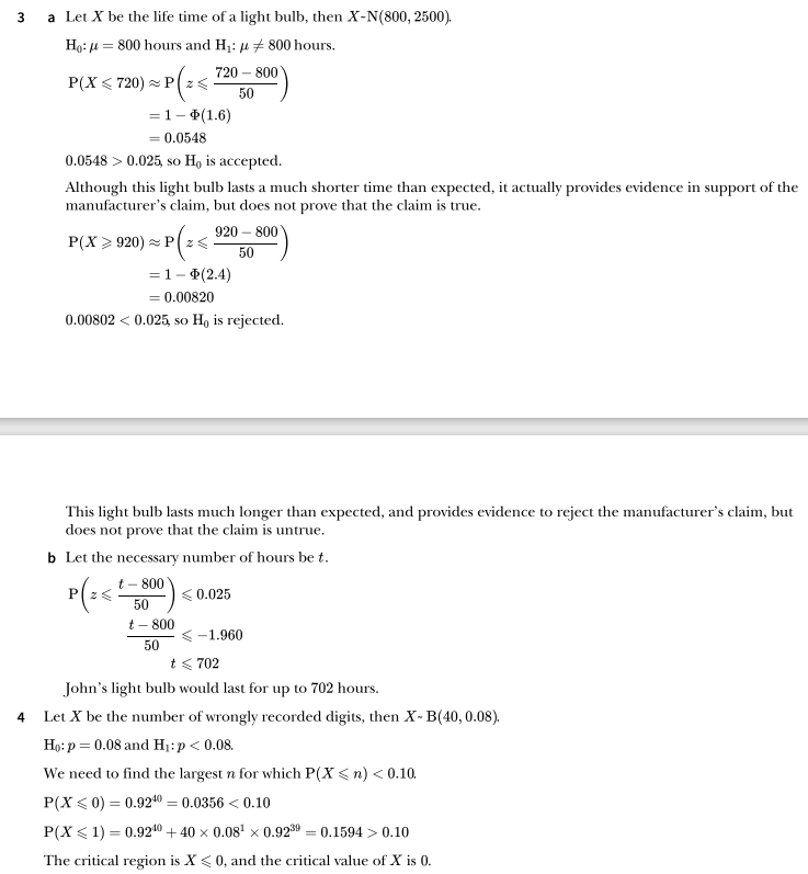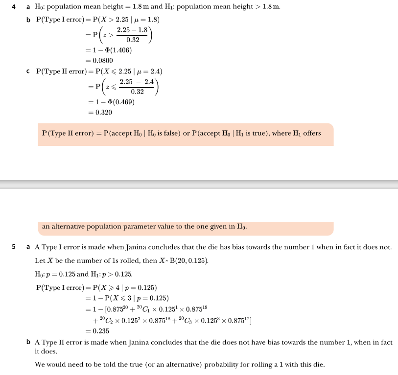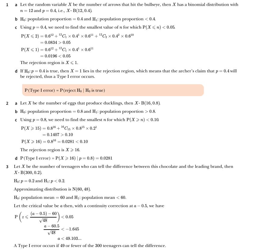 Using the null hypothesis “A person tested doesn’t have the condition”, state the alternative hypothesis and the critical region and find the probability of (a) a Type I error; and (b) a Type II error.