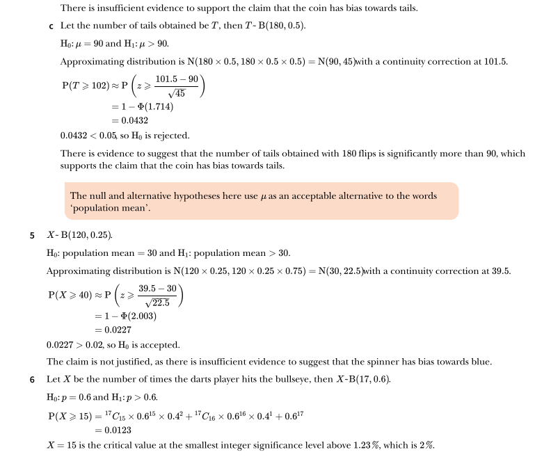 She tosses the coin 16 times and carries out a hypothesis test at a 5% significance level.