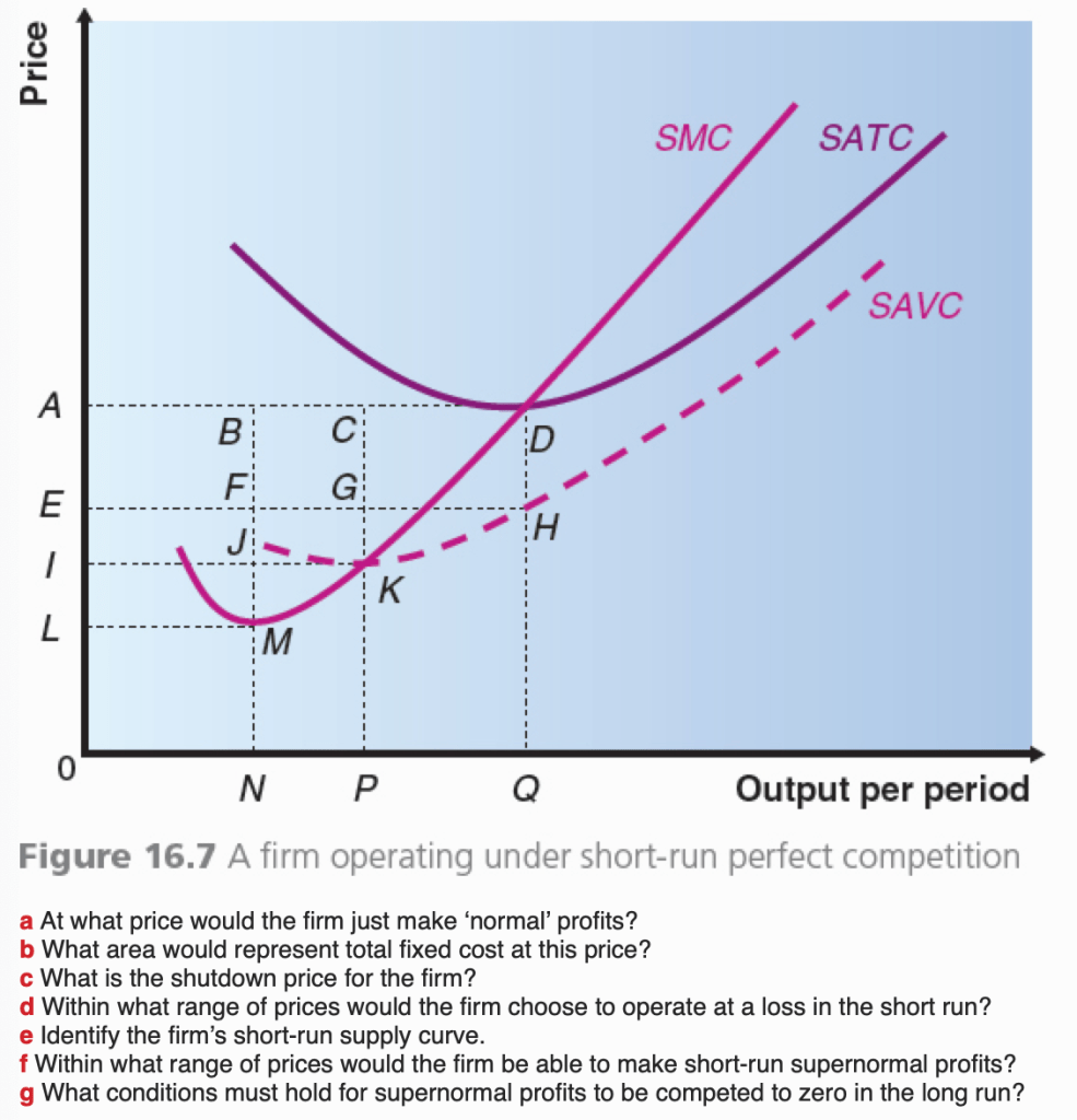So why is there a change from short-run to long-run? Well, the diagram below shows that where the SMC’s intersection with the demand curve (i.e. the price point) is above the SATC, the firm is making supernormal profits: