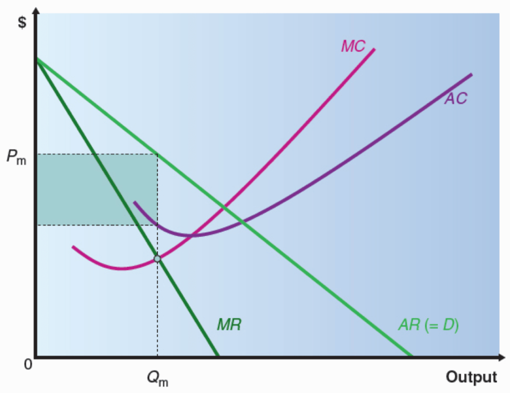 As shown (the rectangle), this allows supernormal profits, and the barriers to entry ensure that these supernormal profits continue.