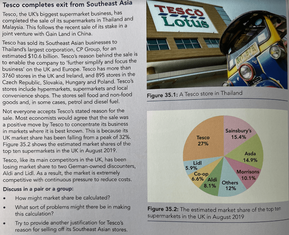 One way of identifying where markets lie on the spectrum from monopoly to perfect competition is to calculate an n-firm concentration ratio, which is a measure of the market share of the largest n firms in an industry. This is typically calculated based on output, but could also be calculated by numbers employed. We use the following table to consider this measure: