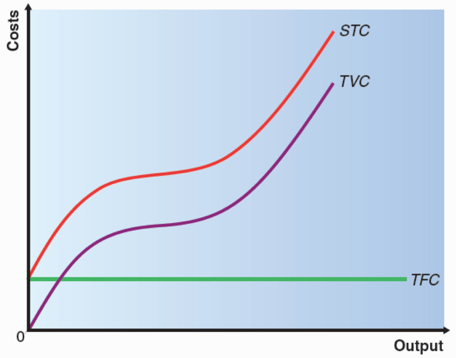 Short-run total costs (STC) = Total fixed costs (TFC) + Total variable costs (TVC)