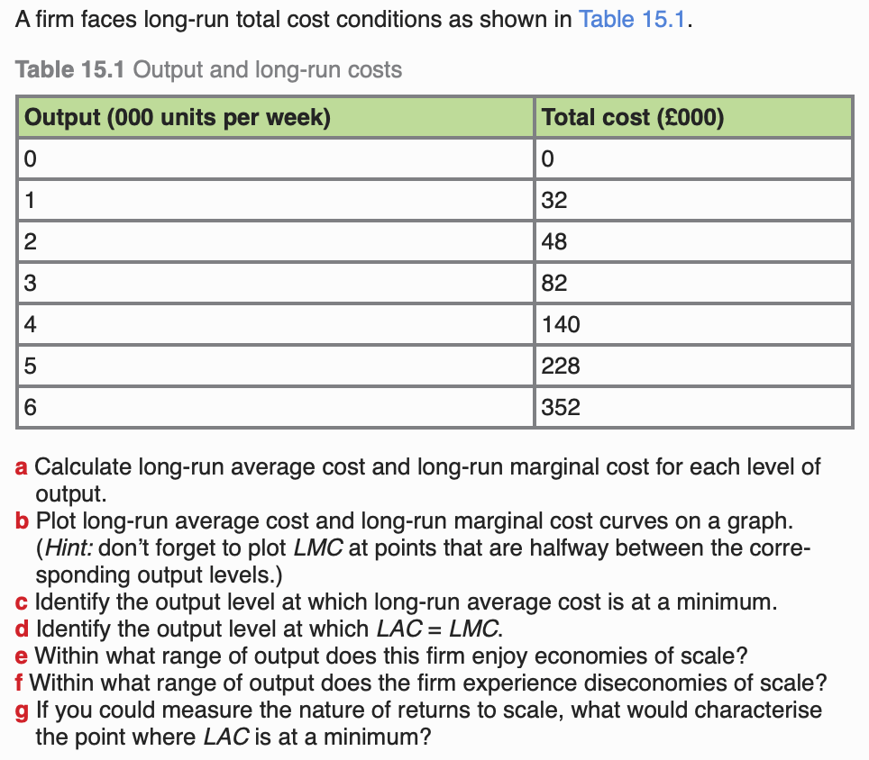 Task – Long Run Costs