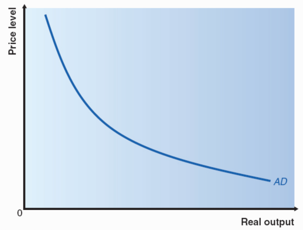 Note that when the price level is low, this means that the purchasing power of income is high, so in real terms, income is high and the real value of household’s wealth is also raised. So, ceteris paribus, a low price level leads to relatively high consumption (known as the wealth effect).