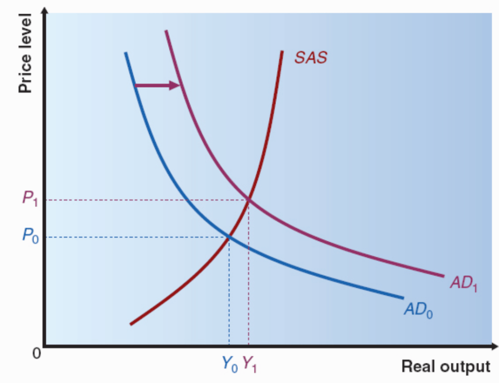 Once we have identified macroeconomic equilibrium, we can do some comparative static analysis. A shift in the aggregate demand curve can be due to any non-price level influence, e.g. changes in:
