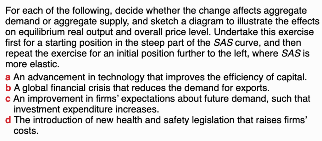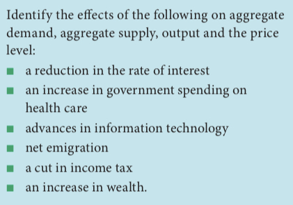 Task – Impacts on aggregate supply and demand